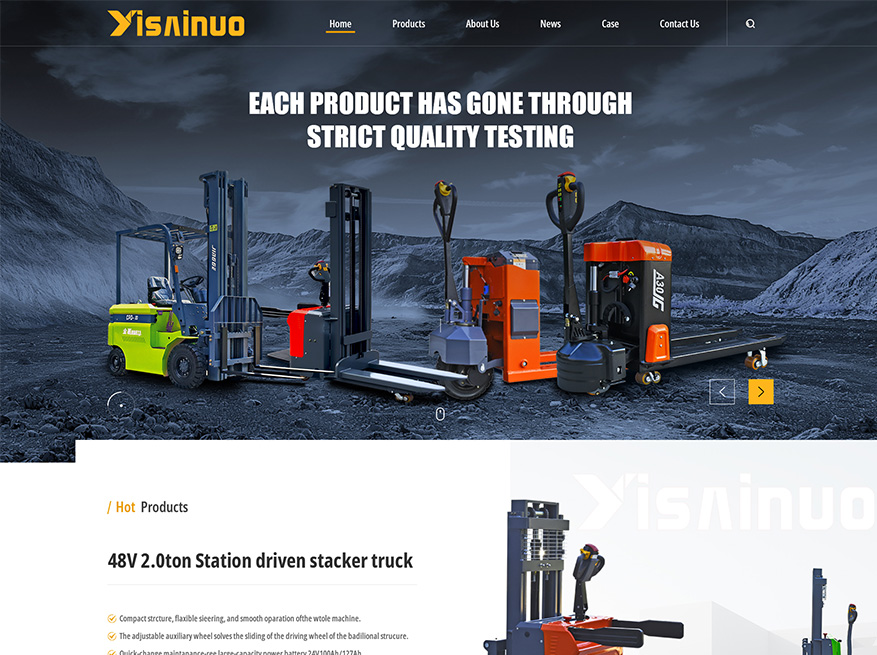 色彩搭配:采用黄色 + 深灰 / 黑色的高对比组合,以沉稳专业的深灰 / 黑色作为页面主基调,契合叉车等工业设备的重型属性与可靠特质;以活力醒目的黄色作为点缀色,用于突出核心标题、按钮及转化入口,形成强烈视觉对比,既彰显品牌辨识度,又完美契合外贸机械类网站的国际化审美。 功能版块:覆盖外贸营销全链路核心需求,设置关于我们(企业实力与品牌资质展示)、产品展示(多规格叉车及搬运设备分类呈现)、行业新闻(技术动态与项目资讯更新)、公司案例(海外客户合作成果展示)等核心版块,底部配置固定询盘框,缩短客户转化路径。版块划分逻辑清晰,信息层级分明,满足海外客户快速获取关键内容的需求。 首页设计:采用极具冲击力的大板块布局,摒弃细碎排版模式,每一个版块都以全屏或大尺寸色块结合高清产品实景图呈现,视觉饱满且重点突出。鼠标滑动浏览时版块衔接流畅,既能第一时间抓住海外访客注意力,又能系统传递企业核心竞争力,整体设计大气磅礴,完全贴合外贸客户的浏览习惯。 产品内页:内页延续大气风格,同时强化内容的实用性与转化导向,支持多维度信息展示,产品优势以图文结合形式直观呈现核心卖点。 SEO 优化:内置专业 SEO 优化架构,深度适配 Google 等海外主流搜索引擎抓取规则。支持自定义页面标题、关键词、描述,采用简洁规范的 URL 结构,为产品图片配备精准 ALT 标签,助力网站在海外搜索结果中获得更高排名,实现精准获客,降低企业推广成本。 多语言支持:搭载灵活的多语言切换功能,支持英语、西班牙语、俄语、阿拉伯语等主流外贸语种,可根据目标市场需求自由配置。消除跨境语言沟通壁垒,为不同地区的海外客户提供本地化浏览体验,提升品牌的国际认可度与客户信任感。 后台管理系统: 配备强大且易用的后台管理系统,界面简洁直观,操作门槛低。无需专业技术知识,即可轻松完成产品上下架、分类调整、内容更新、询盘查看与客户信息管理等全流程操作,大幅降低企业的网站维护成本,实现高效运营。